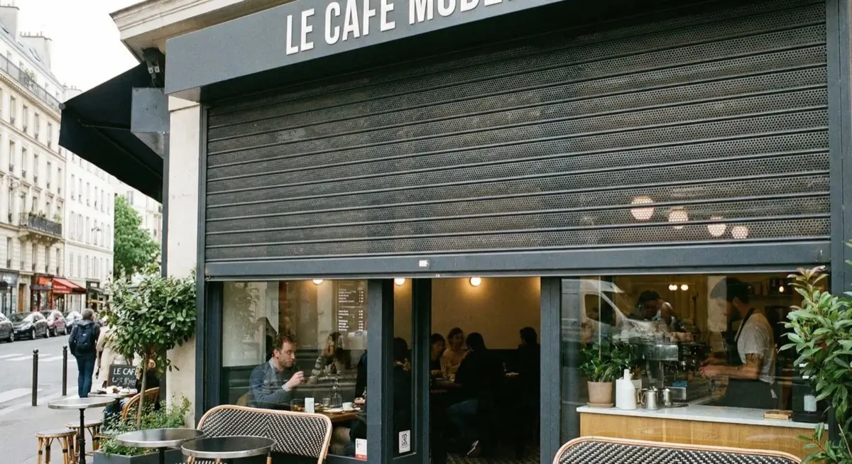 « Rideau micro-perfore pour ma boutique de pret-a-porter. Le rendu est elegant, les clients voient la vitrine meme le soir. Fabrication en 8 jours. »
